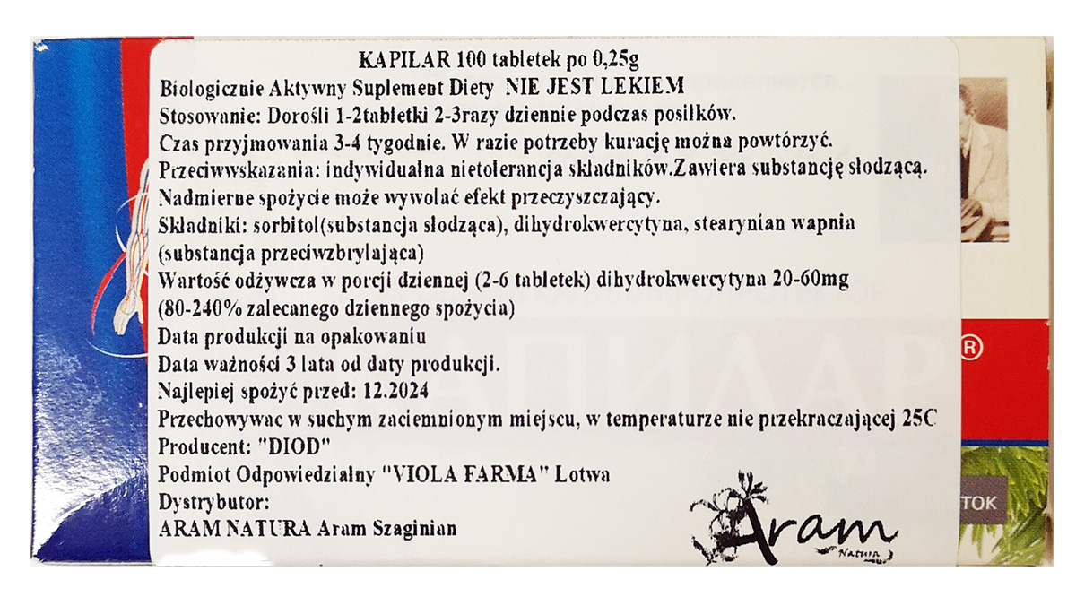 Kapilar  to suplement diety – źródło bioflawonoidów (dihydrokwercetyna).