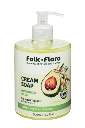 ⭐ Folk & Flora – Kremowe Mydło w Płynie „Awokado i Oliwa z Oliwek” 500 ml