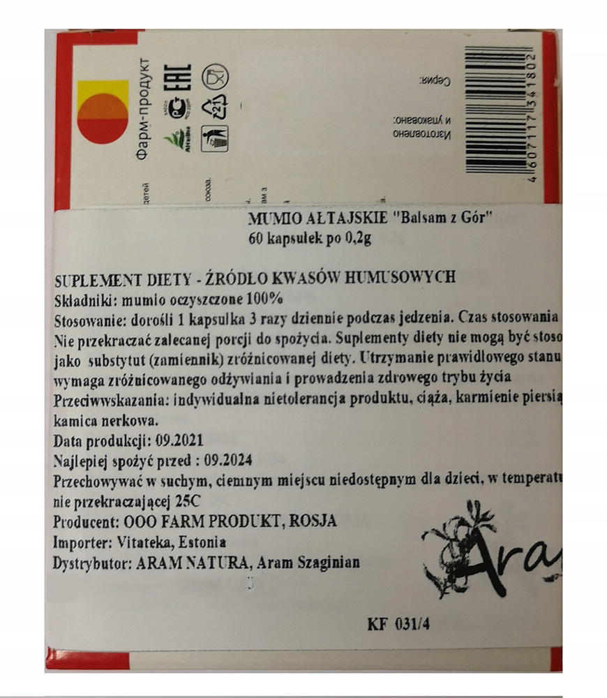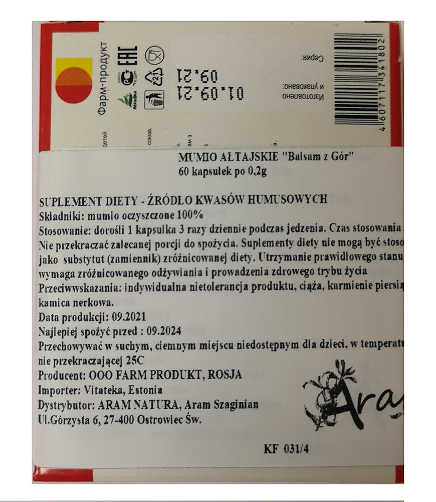MUMIO SHILAJIT AŁTAJSKIE – BALSAM GÓR – 60 kapsułek – ORYGINALNE ROSJA – GWARANCJA NAJWYŻSZEJ JAKOŚCI