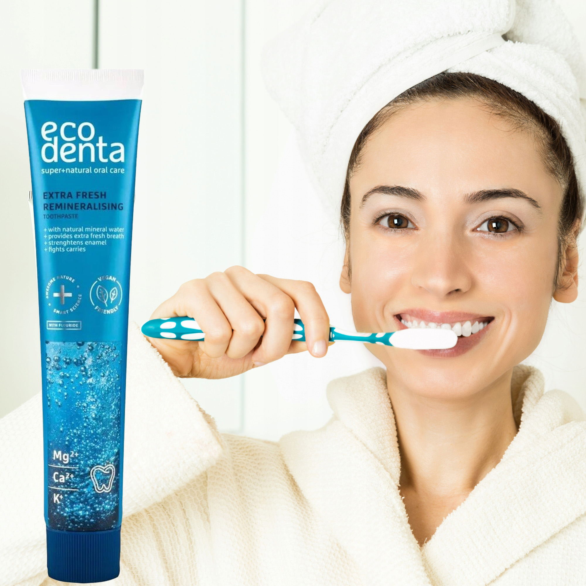✅Zapewnij swoim zębom kompleksową ochronę i pielęgnację dzięki naszej pasty do zębów remineralizującej z fluorem – Wzmacnia Szkliwo od marki Ecodenta.