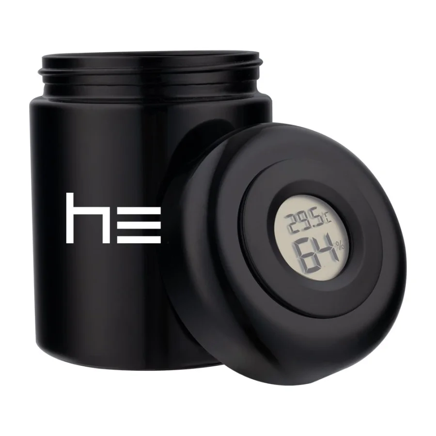 Zintegrowany higrometr wbudowany w pojemniku HERO to nie tylko dodatkowa funkcja – to kluczowy element zapewniający doskonałe warunki przechowywania Twoich ziół. Dzięki wbudowanemu higrometrowi możesz śledzić wilgotność wewnątrz pojemnika w czasie rzeczywistym, co daje Ci pełną kontrolę nad środowiskiem przechowywania swoich ulubionych ziół. Przechowywanie ziół w odpowiedniej wilgotności jest kluczowe dla zachowania ich jakości i skuteczności. Wbudowany higrometr HERO umożliwia bieżące monitorowanie wilgotności, co pozwala uniknąć ryzyka przesuszenia, które może prowadzić do utraty aromatu i właściwości, oraz nadmiernego nawilżenia, które może sprzyjać rozwojowi pleśni i zepsuciu zawartości.