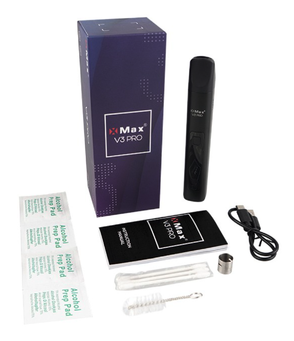 ▪ Waporyzator X-Max V3 PRO ▪ Kabel ładowania USB-C ▪ Adapter do koncentratów ▪ Zestaw do czyszczenia i ubijania suszu ▪ Instrukcja obsługi