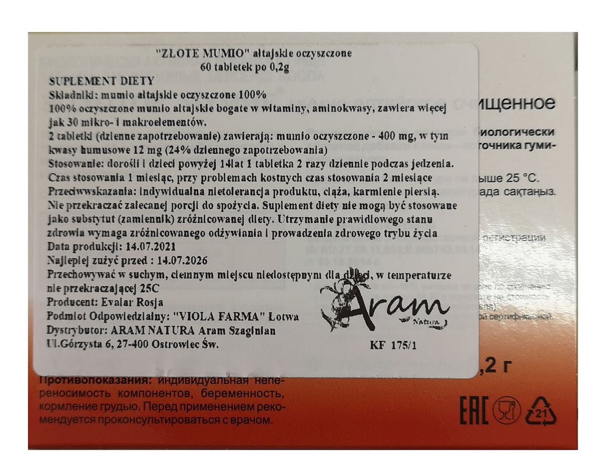 ZŁOTE MUMIO AŁTAJSKIE OCZYSZCZONE 200 mg – 60 tabletek